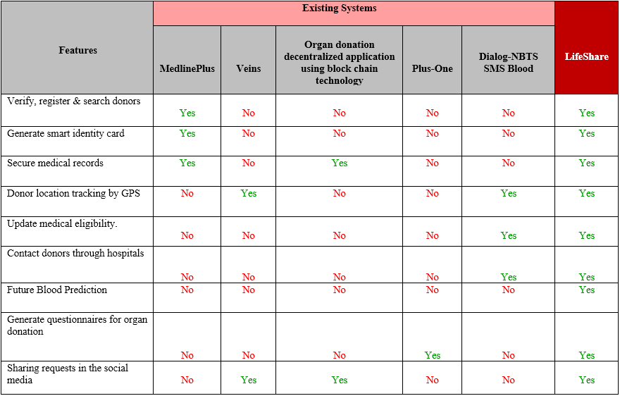 According to our research, we identified a group of people facing some common problems stated above. So, when we solve these problems for a unique group of people, we have to use a common communication platform. When considering the feedback collected and analyzing mechanisms there are several types of researches that are reaching for it. But most of researchers have done only for a particular field such as blood donation and organ donation separately. But the proposed system gives solutions for both blood and organ donation by developing a unique platform after we identified unique features.